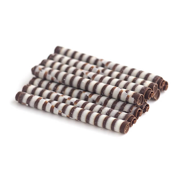 | 白樺模様が美しい、デコレーション用のスティック状チョコレート。パフェやデコレーションケーキのワンポイントにどうぞ。 |