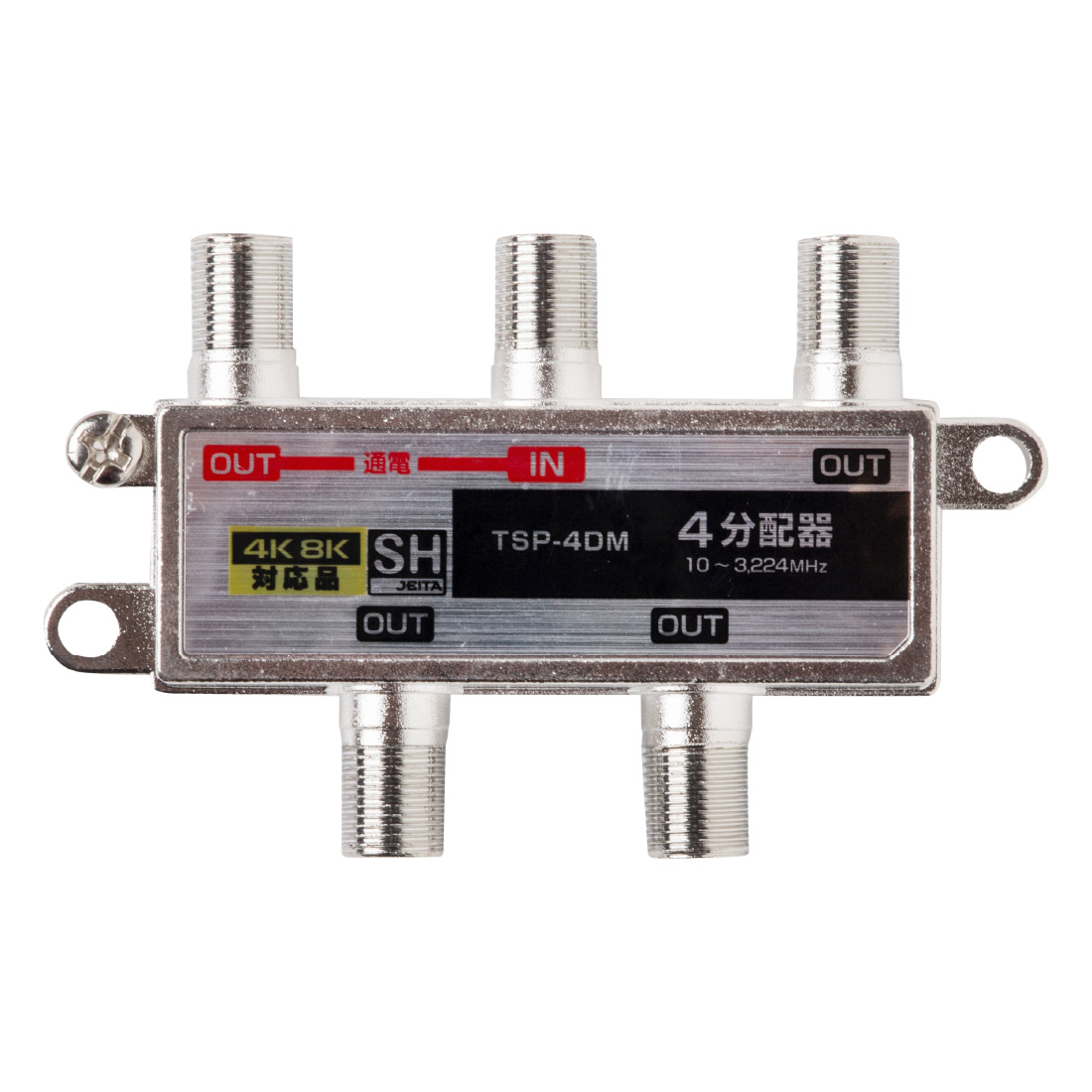 ◆安定した受信を支える、高性能4分配器【4K8K・3.2GHz対応】「TSP-4DM」は、アンテナ信号を4方向に均等分配できる屋内用の4分配器です。