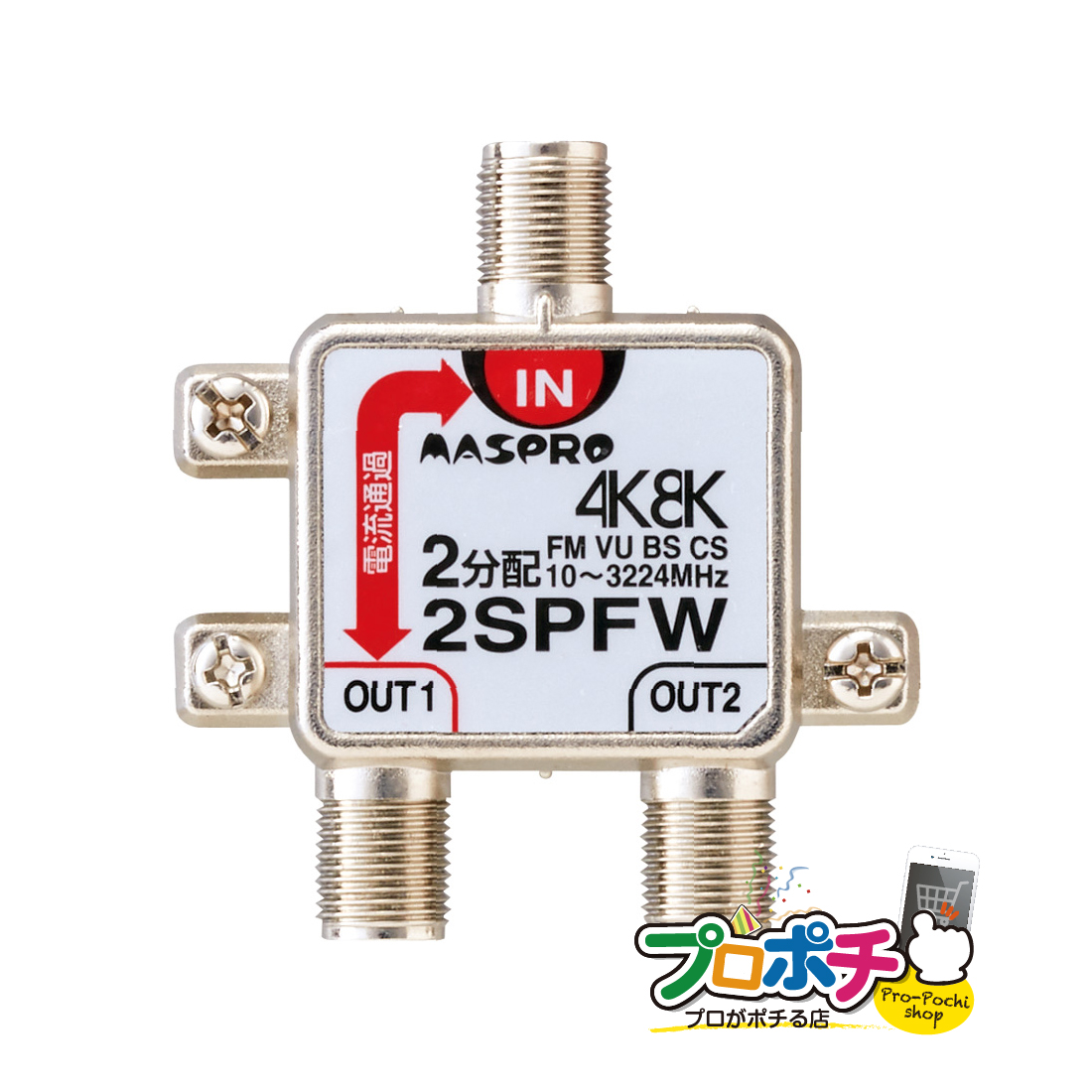 マスプロ電工 2分配器 1端子電流通過型 4K8K衛星放送(3224MHz)対応 2SPFW 屋内用 室内 アンテナ分配器