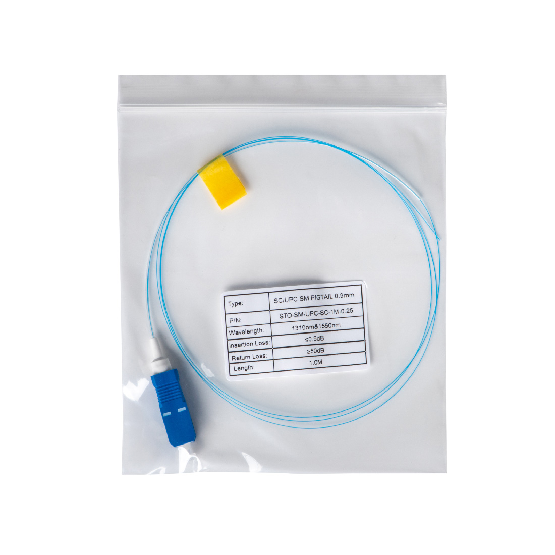 【在庫有】STO-SM-UPC-SC-1M-0.25 片端SCコネクタ付き単心コード 光ファイバピグテール 1m 1本 融着接続用 STORIA