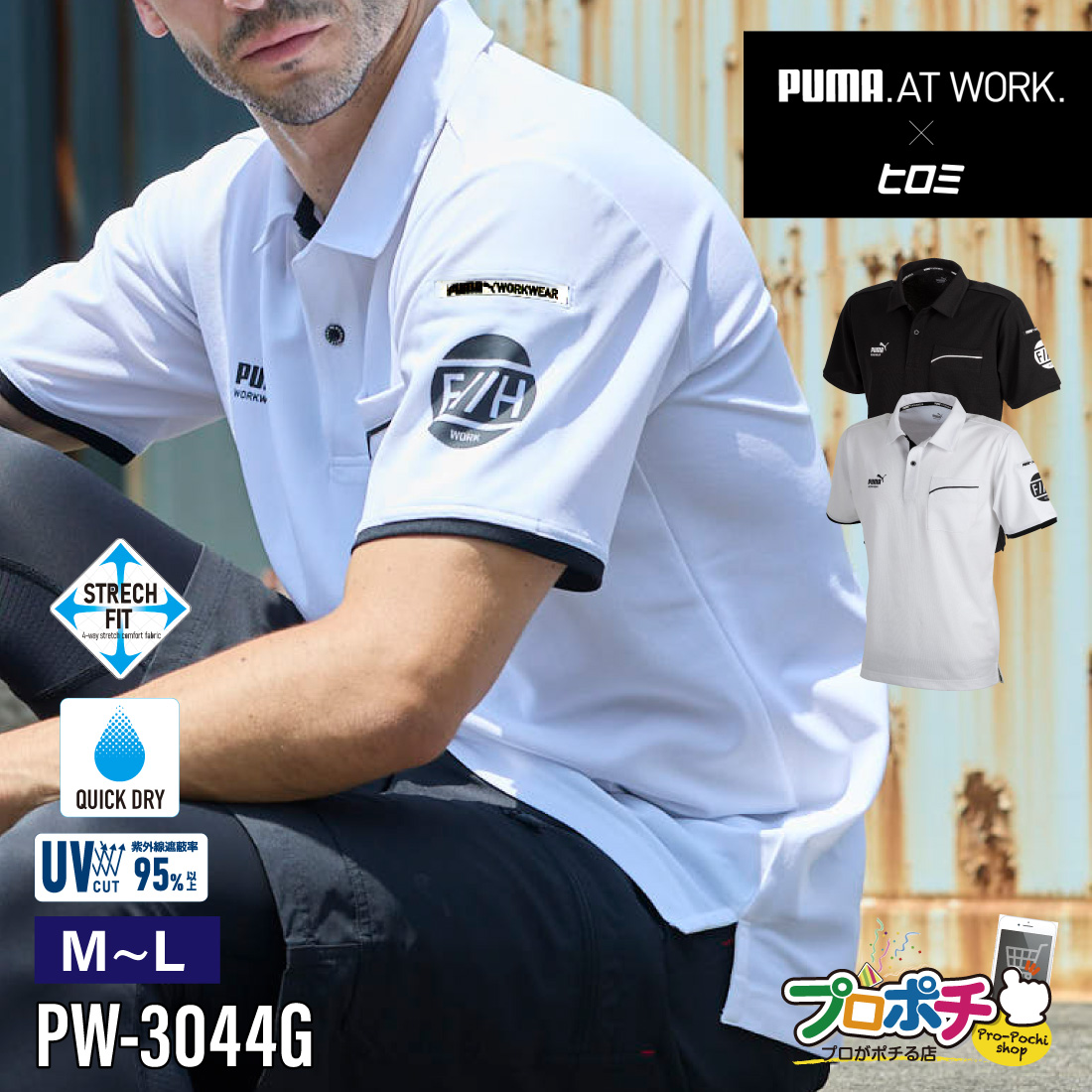 ヒロミ×PUMAコラボ 半袖 ポロシャツ PW-3044G 作業ウェア 吸水速乾 春夏 UVカット ストレッチ 作業服PUMA
