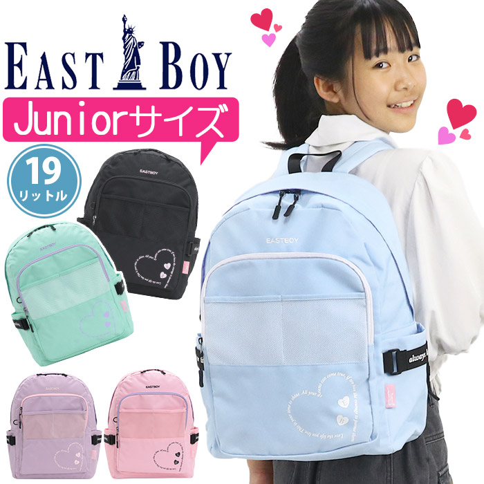 | 「英字とハートの少し大人っぽいデザインがポイント!」 大人気EASTBOYの『エルメシリーズ』から大人かわいいジュニアリュックが登場。 小学校中学年〜小学校高学年向けの19Lサイズ。 A4サイズ対応の使いやすいサイズ感で、通学・遠足、お出かけや習い事など様々なシーンで大活躍してくれます♪ 内外にポケットを搭載しており、フロントのメッシュポケットはデザインのアクセントにもなっています。 大小様々なポケットがあるので、ごちゃつきがちな小物の整理整頓もバッチリ。 背面は、通気性のよいメッシュ素材&クッション入りで快適な背負い心地を実現♪また、ショルダーベルトに防犯ブザーの取り付けに便利なループ付き&荷物のズレを抑えるチェストベルト付きで、フィット感を高め体への負担を軽減します。 インナーのフロント側には迷子や荷物の紛失時に便利なネームラベル付きで、機能面も◎ 内生地には人気色のパープルを使用し、さりげない部分もお洒落な仕上がりに。 おしゃれに興味を持ち出す女の子にオススメのデイパックです。 |