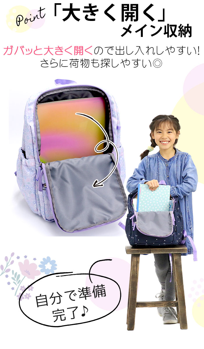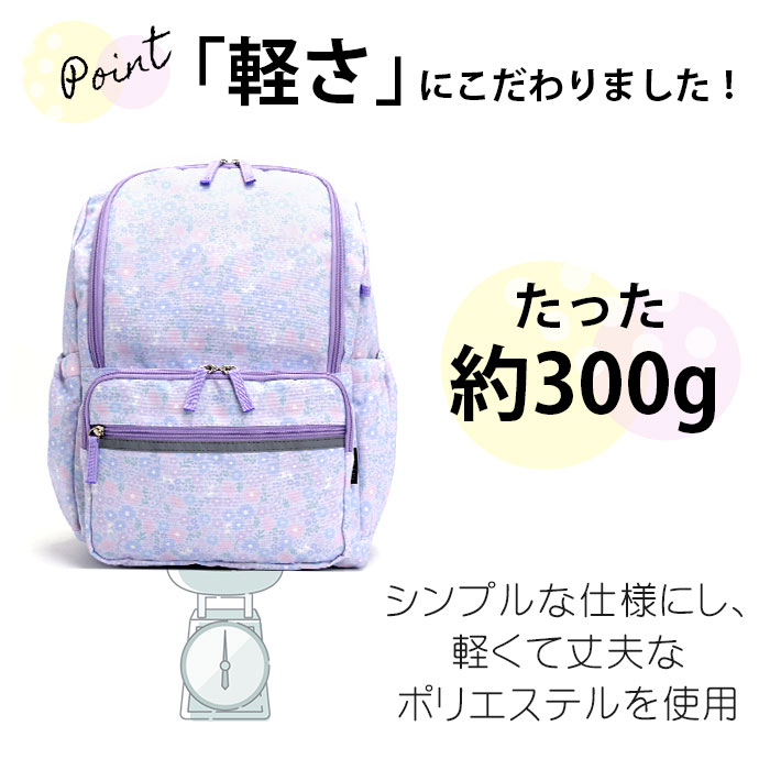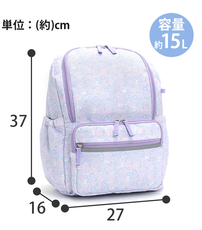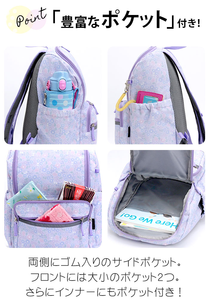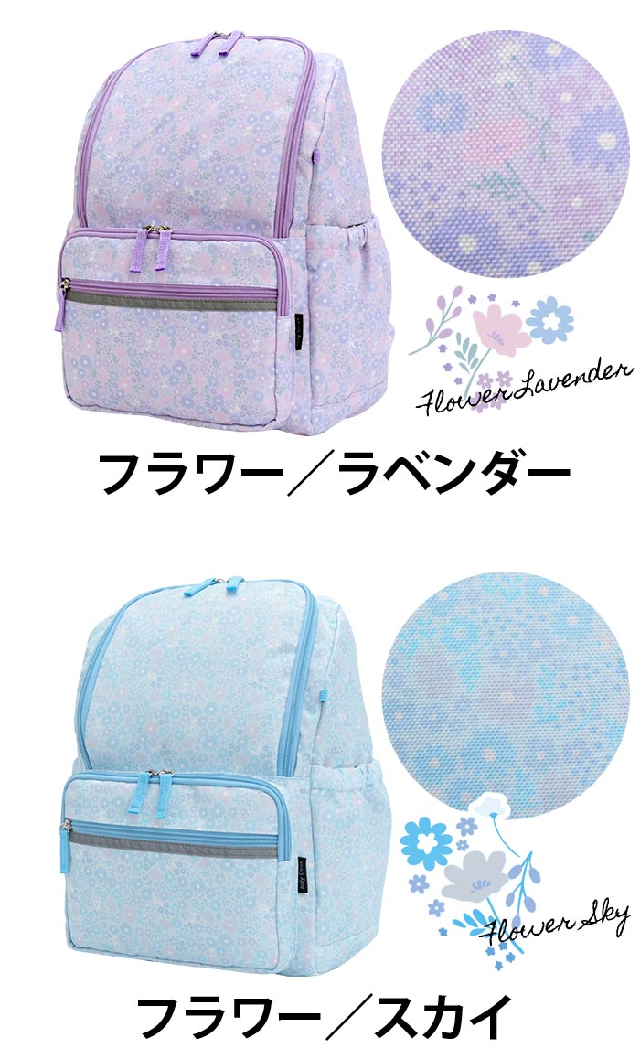 | ■メーカー品番:JDPG-001 ■カラー:フラワー/ラベンダー、フラワー/スカイ、リボン/ネイビー、リボン/ブルーグレー ■サイズ:約W27×H37×D16(cm) ■素材:ポリエステル ■重量:約300g ■ポケット:(外)×4(内)×1 ■関連キーワード: |