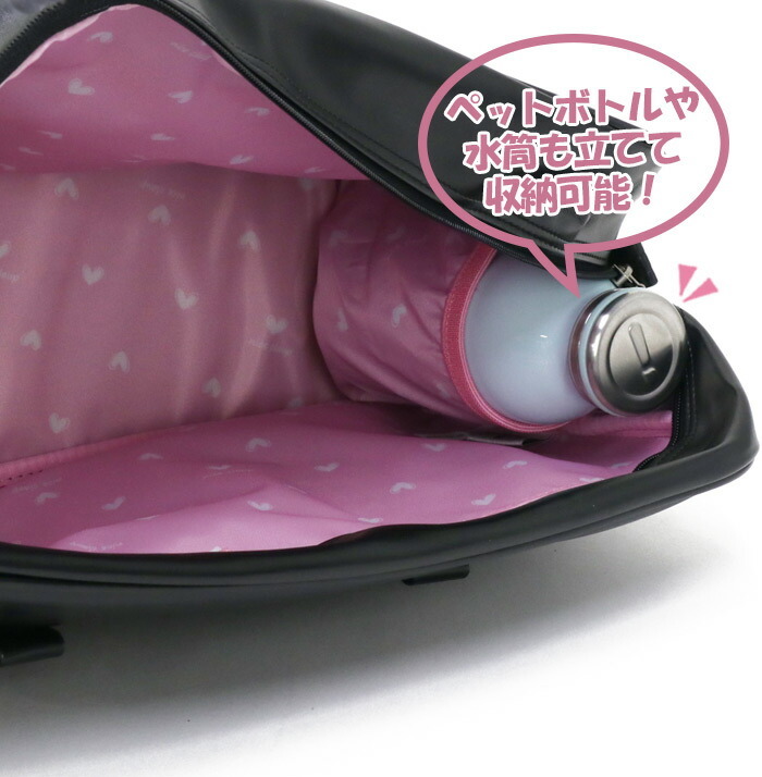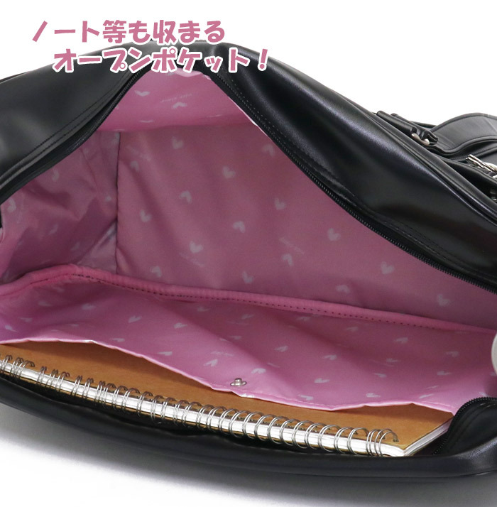 メイン収納はA4サイズ対応で、教科書はもちろんお弁当や着替えなども入る通学にも安心のサイズ。
