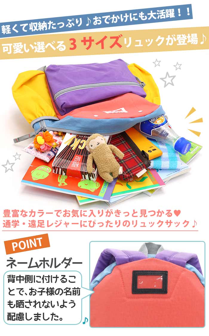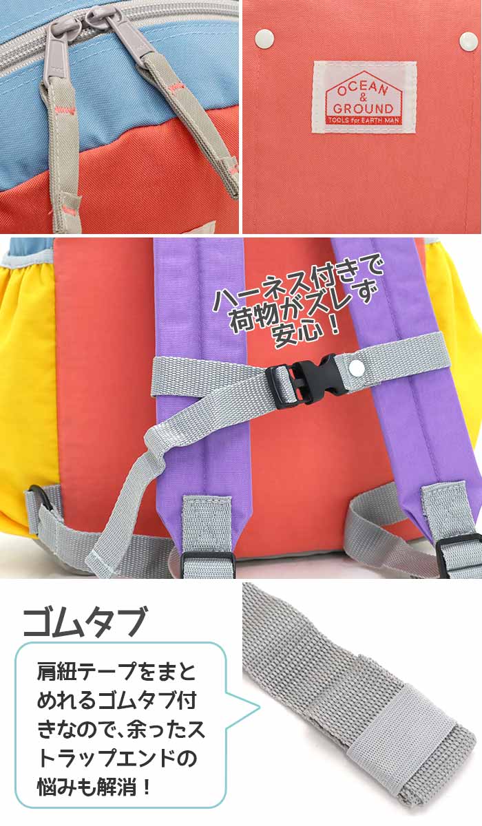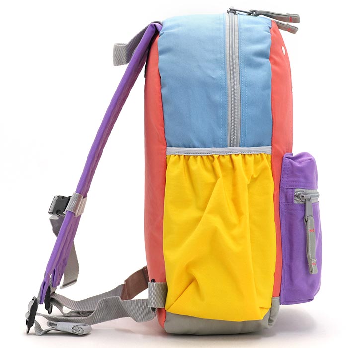 | ユニークなカラーブロックデザインが好評の「DAYPACK CRAZY」 名前を新たに「DAYPACK MULTI」としてリニューアル! 各パーツが異なる色で組み合わされた「マルチカラー」がポイント。持ち手や肩紐テープの品質を向上し、腕が抜けにくく、より丈夫で安心して使える仕様になりました。 XSサイズは2〜3歳 、Sサイズは年少〜年中 、Mサイズは年長〜小学低学年におすすめなサイズ感。 お子様が開閉しやすいファスナーを使用。 広いマチに全面とサイドにもポケットが2つありペットボトルもすっぽり入ります。 背中側にネームホルダーを付けることで、お子様の名前も晒されないよう安全に配慮しました。 肩紐テープをまとめれるゴムタブ付きなので、余ったストラップエンドの悩みも解消!お子様もさらに快適に使えます。 ショルダーベルトと背面はクッション入りで肩への負担を軽減。さらに、位置調節が可能なハーネスベルトがズレを防いで体にフィットし、長時間の使用でも疲れにくい◎ 保育園、幼稚園、小学校の遠足やアウトドアにと大活躍のバッグです♪ |