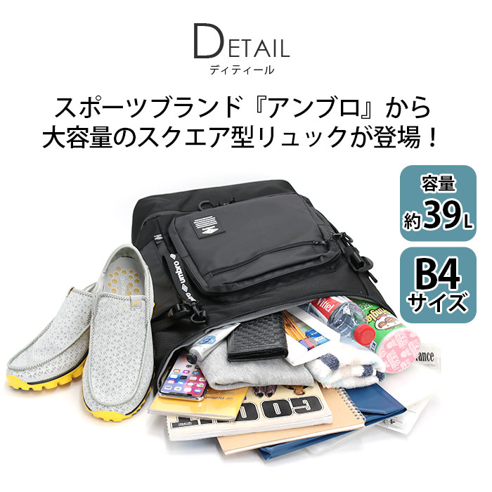 容量約39LでA4ノートはもちろんB4ファイルも余裕で入り、通勤通学にも安心の大容量サイズです◎