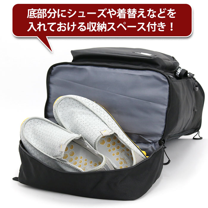 便利な2層式仕様で、底部分にシューズや着替えなどを入れておける収納スペース付き!