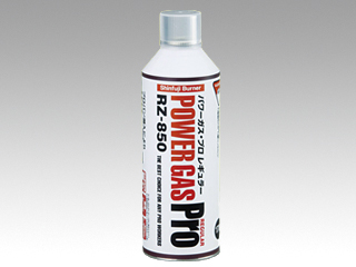 プロパン混入により、強火力・安定・安全使用を実現。吸収体構造により、点火直後から逆さ使用が可能。ねじ込み式。