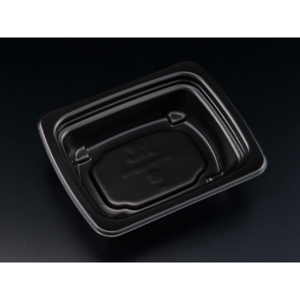 ラップ・トップシール・フタが選べる無敵のフラットトップ形状。人手不足や繁忙時間帯での使い分けが可能です。縦にも横にもラベルが貼れる。小スペースの縦陳列にも対応できるので、小型店様にもおすすめ。従来品より断熱性をアップし、レンジアップ後に持っても熱すぎないあんしん設計。耐熱温度130℃。本体のみ、蓋は別売りです。[黒]汎用性が高く、幅広いメニューにお使いいただける万能カラー。[容量]約470ml。