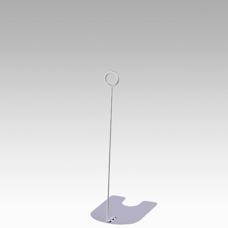 先端のリングにポップカードを挟んで掲示するポップスタンドです。プライスカードが隠れ過ぎない大きさのリングで、カードがしっかり挟めます。素材はサビに強いオールステンレスになっております。カフェやベーカリーなどの飲食店では絶大な指示を得ています。