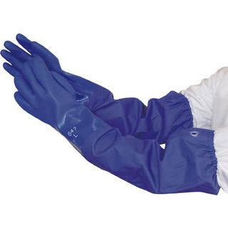 ビニール製は天然ゴムに比べ、油に強く、耐摩耗性に優れ、手袋に腕カバーを特殊溶着加工で一体化していますので、水を伴う作業に適しています。