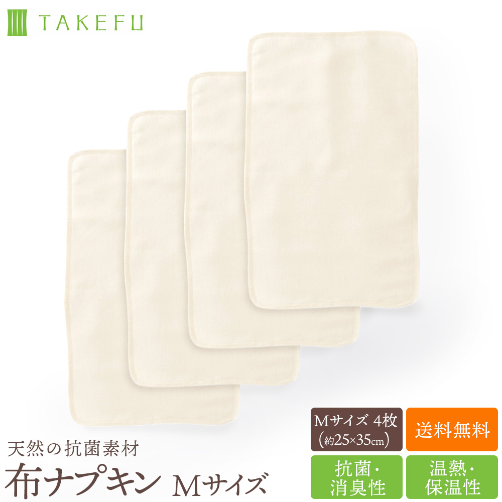 TAKEFU 竹布 布ナプキン Mサイズ 4枚セット 洗い替え 天然素材 抗菌 消臭 サラサラ ムレない ニオイ軽減 敏感肌 たけふ 竹繊維 ネコポス送料無料