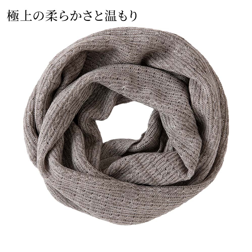 ウールのようなチクチク感がなく、ふわっと優しく首元を包み込みます。