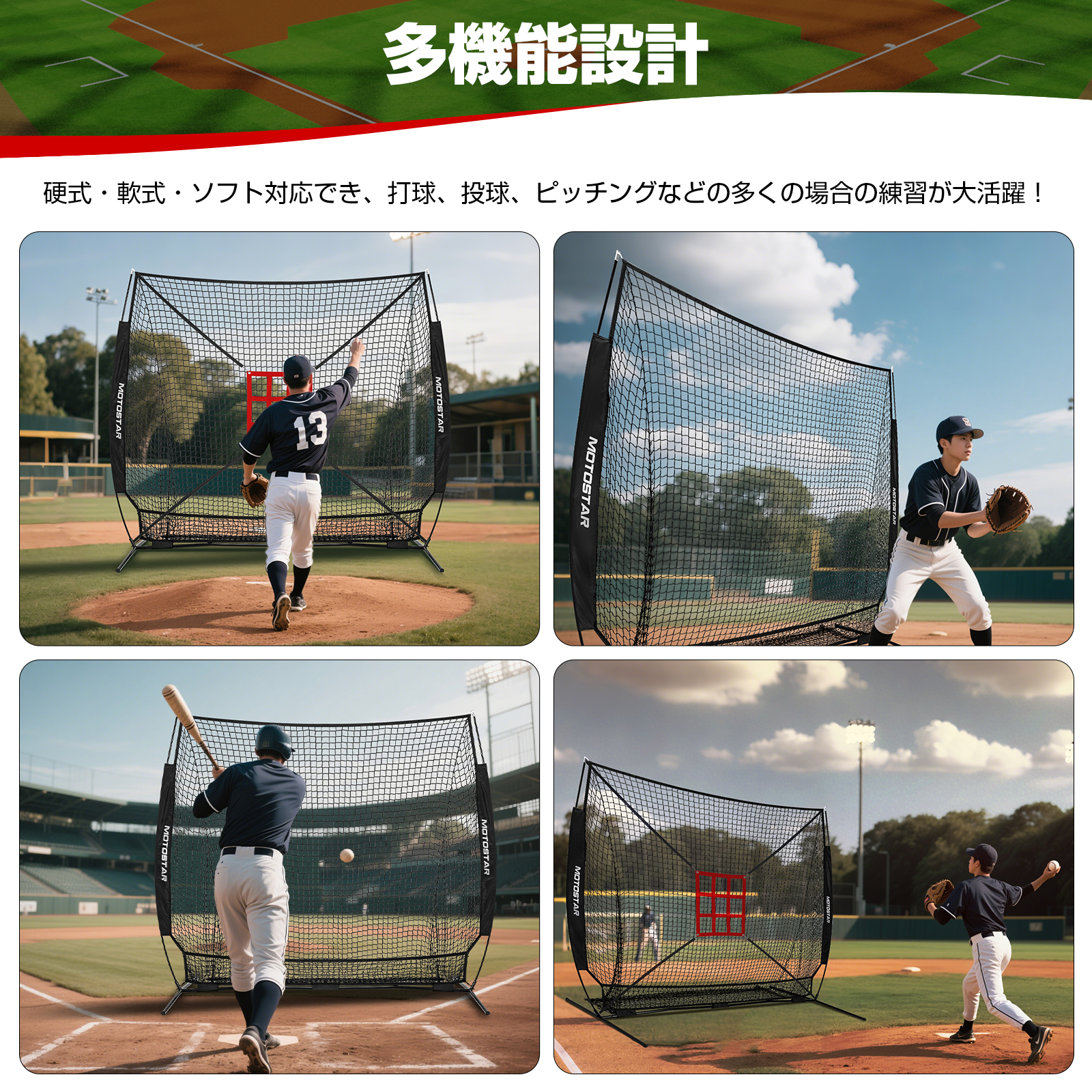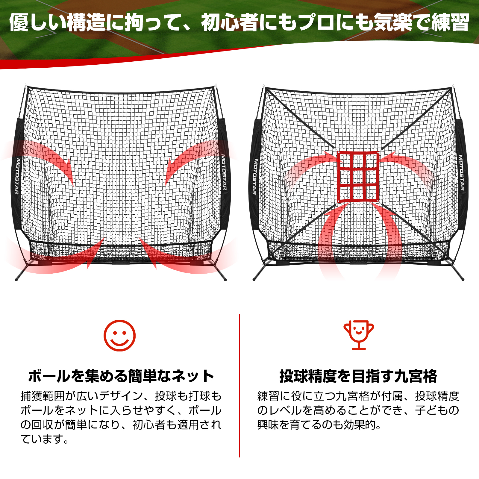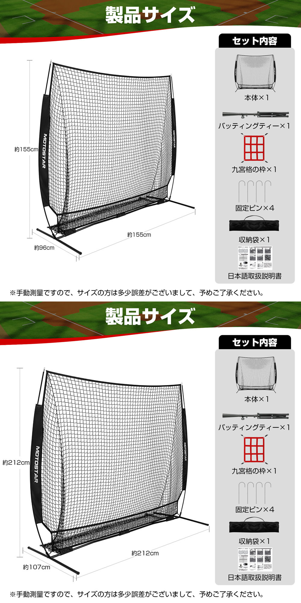 関連キーワード:バッティングネット 野球練習ネット 212×212×107cm 大型 組立簡単 投球 ボール受けネット ピッチングネット バッティングティー付 収納用バッグ付 野球練習 投球練習 バッティング 野球器具 硬式/軟式対応 ソフトボール練習ネット トレーニング 組み立て簡単