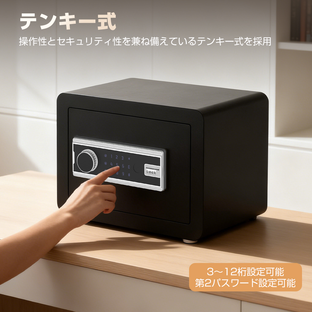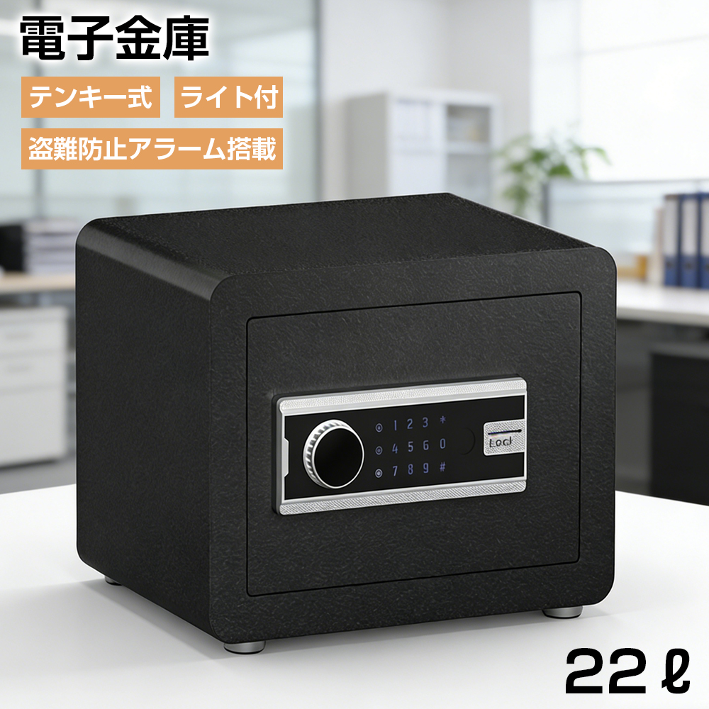 金庫 小型 家庭用 電子式 テンキー式 A4対応 盗難防止アラーム 暗証番号 3桁〜12桁 鍵付き アンカーボルト付き 壁に固定可能 22L 防犯金庫 電子金庫 ミニ金庫 電子ロック セキュリティボックス 釣銭 小銭 入れ お札 業務用 オフイス用 テンキータイプ 小さい 庫内灯付き 棚/仕切り板付き 簡易金庫 卓上金庫 保管庫 おしゃれ