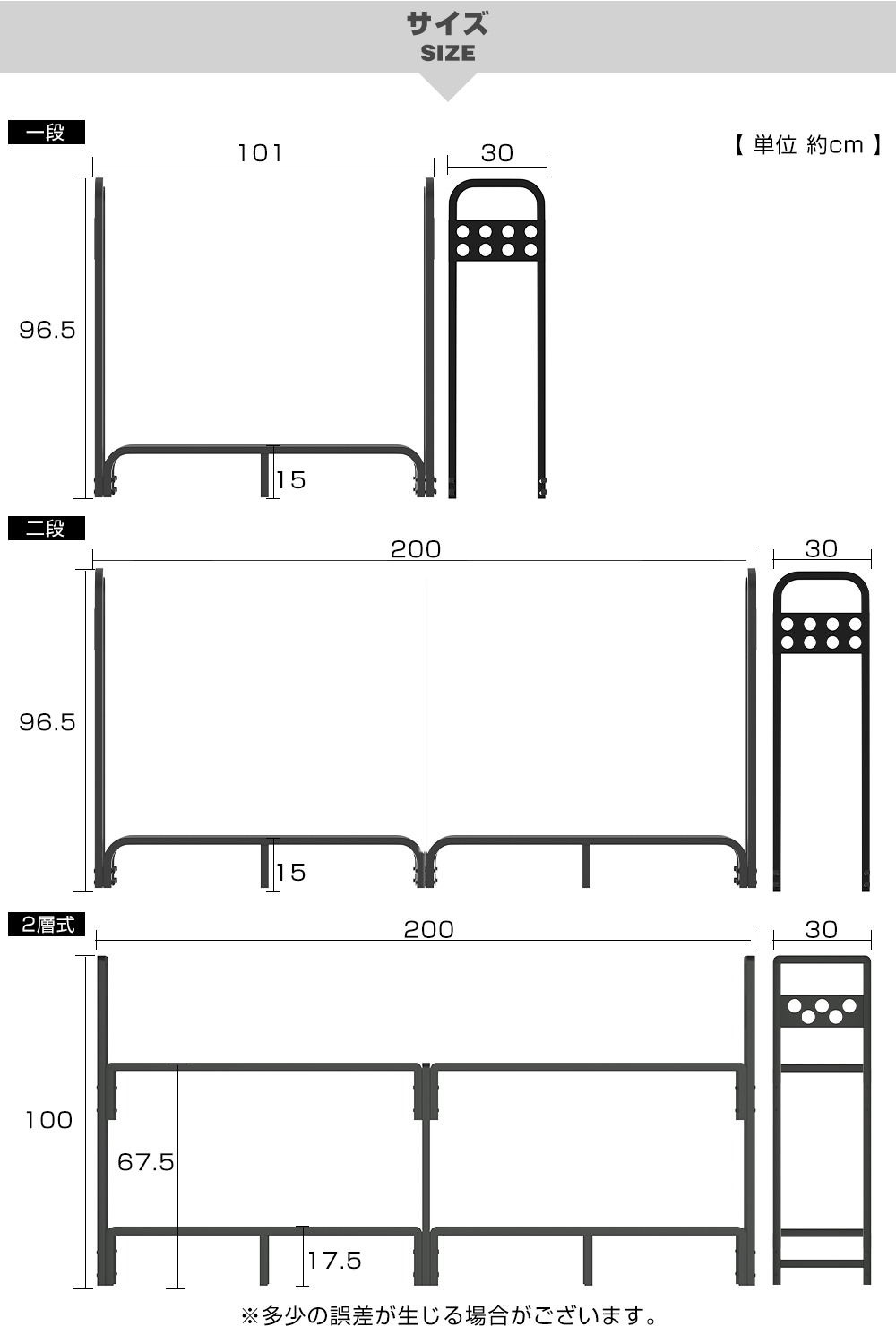 二層二段式:幅200×奥行30×高さ100cm