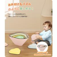 軽量で子供が気軽に持ち上げられますし、持ち運びに便利です。そして収納袋つきで、使わないときは、大きなバランスストーンの上に小さなバランスストーンを置き、塔のように積み重ねて、収納袋に入れて、邪魔にならずに片付けやすい。
