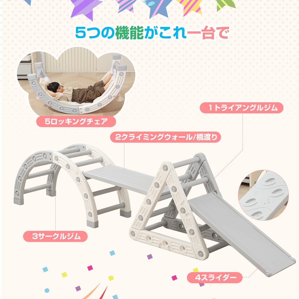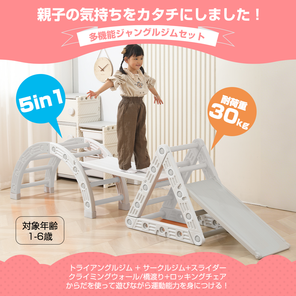 ジャングルジム 室内 5in1 滑り台 すべり台 耐荷重30kg 子供 バランス 筋力 体幹トレーニング スライダー おもちゃ 大型遊具 室内遊び 保育園 プレゼント ギフト
