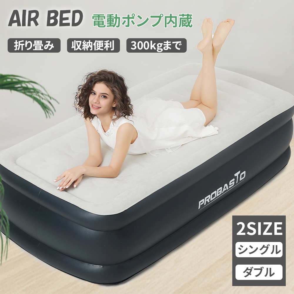 「PROBASTO」エアーベッド 電動ポンプ内蔵 高反発 極厚 空気ベッド 195x98x45cm 折り畳みベッド 耐荷重300kg エアーマット シングル ダブル 収納バッグ