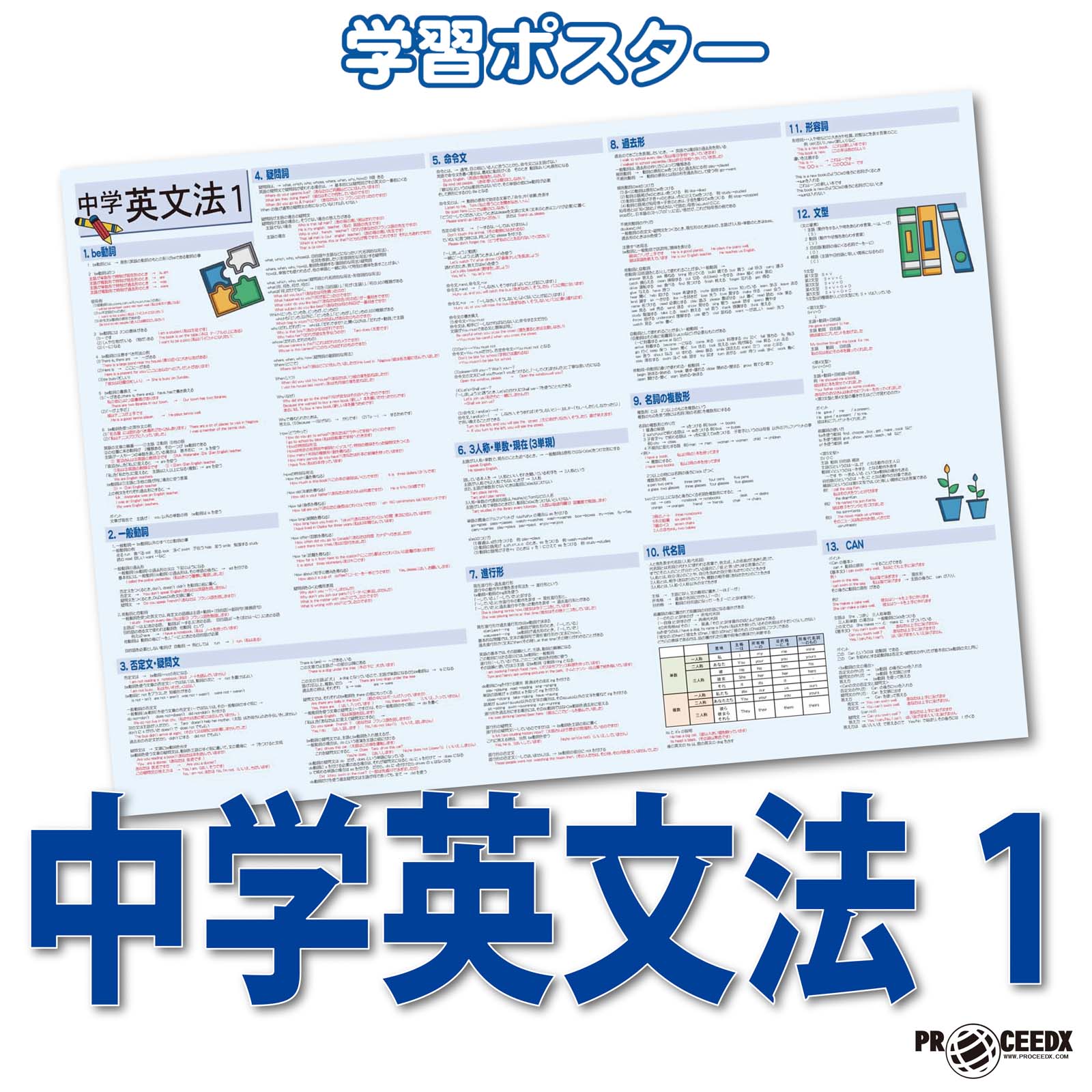 proceedx 学習ポスター 0283 中学英文法1 送料無料 折り目無し送付 勉強部屋 教室 壁掛け 中学