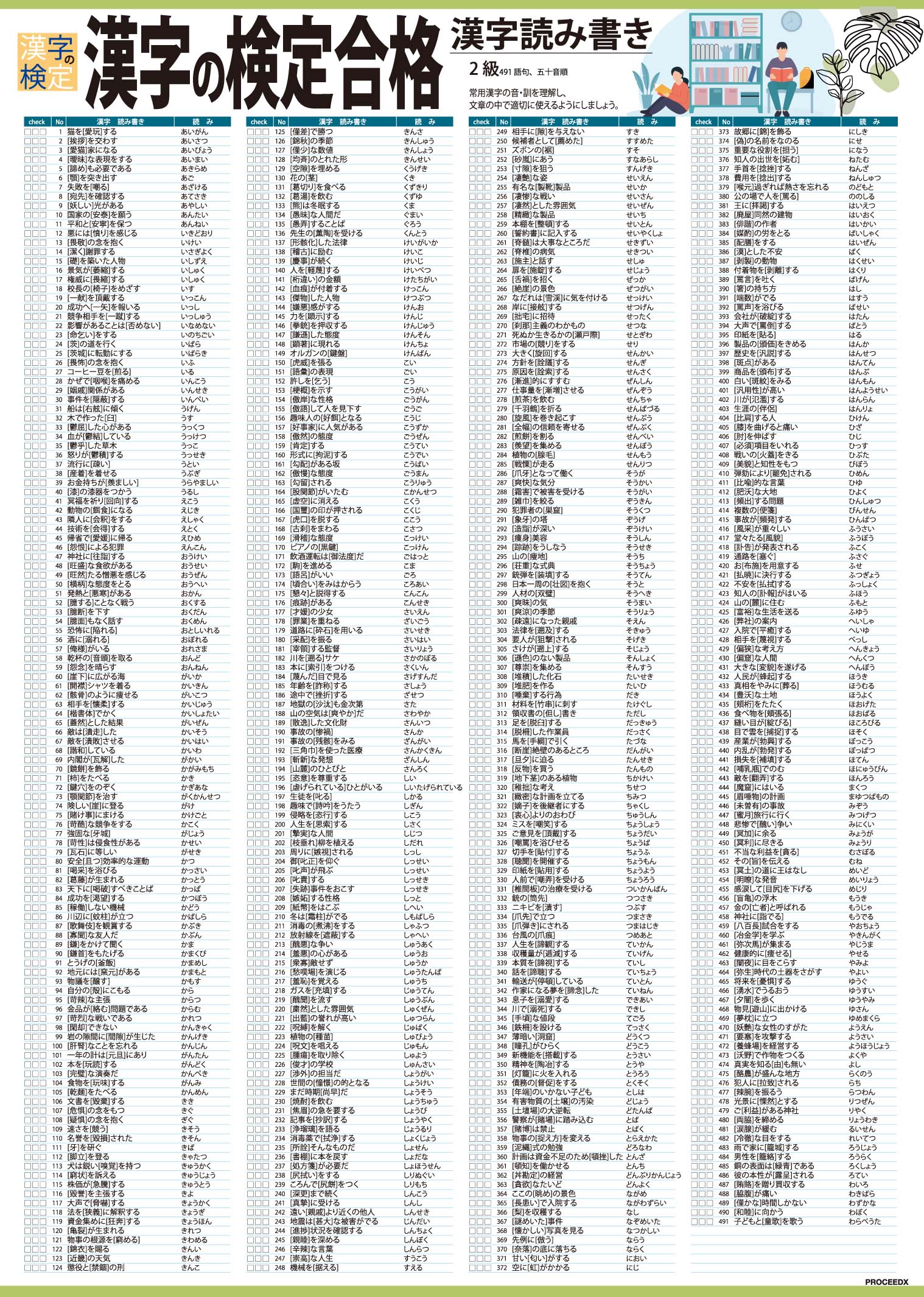 PROCEEDX漢字の検定合格2級対策 漢字読み書きA2サイズ 学習ポスター日本製1204