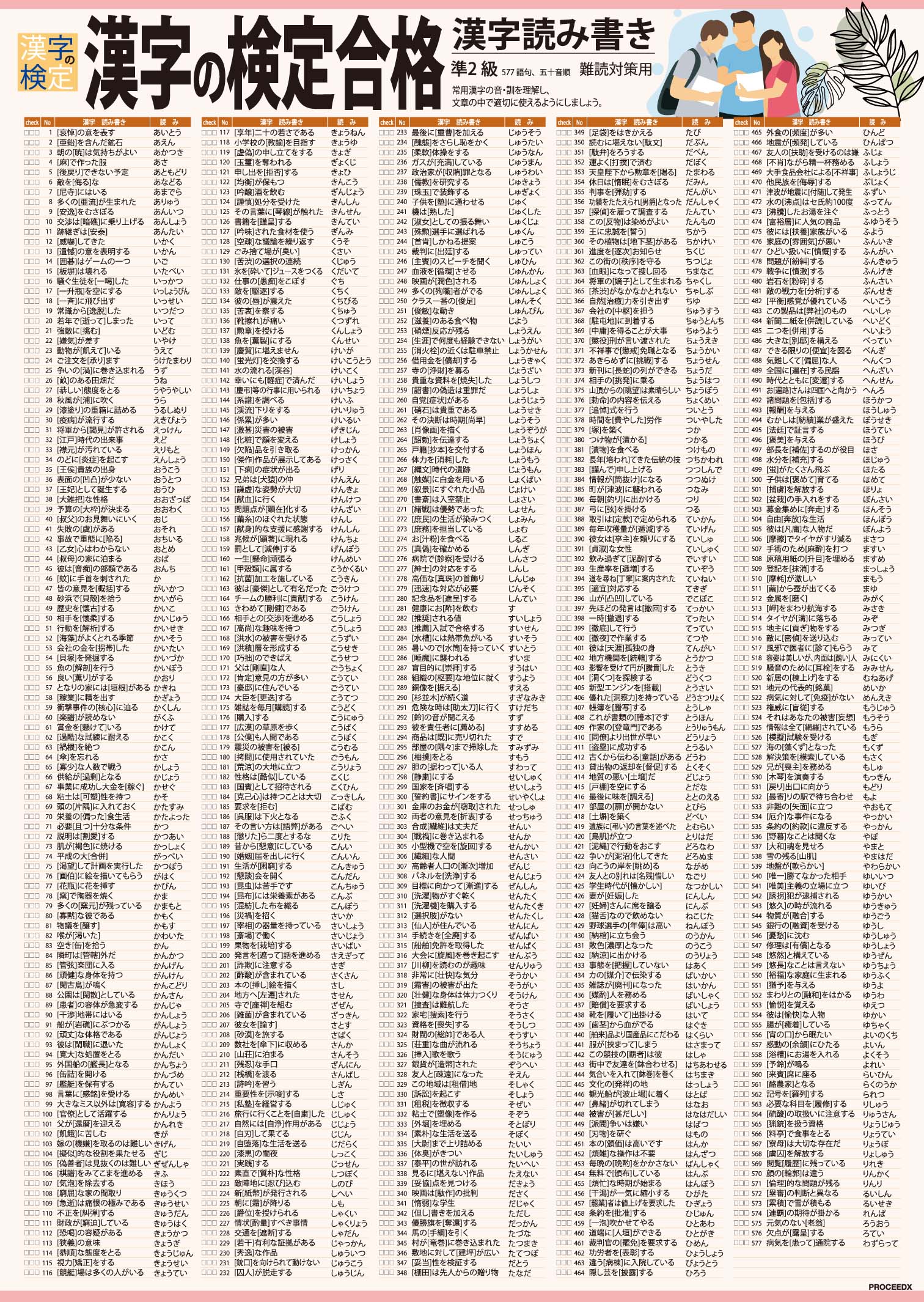 PROCEEDX漢字の検定合格 準2級対策 漢字読み書き A2サイズ 学習ポスター日本製1205