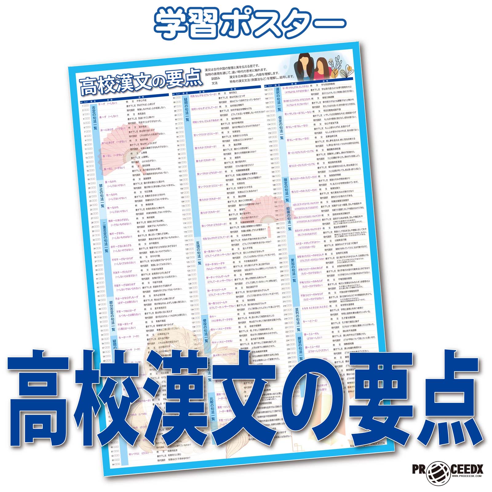 proceedx 学習ポスター1574高校漢文の要点 勉強部屋 教室 壁貼り 学習 大学受験 送料無料