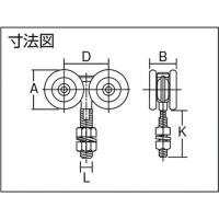 仕様1:●品名:ドアハンガー用複車●適合レール:5号●耐荷重(kg/個):250●A(mm):78●B(mm):55.0●D(mm):83●K(mm):88●L(インチ):W3/4