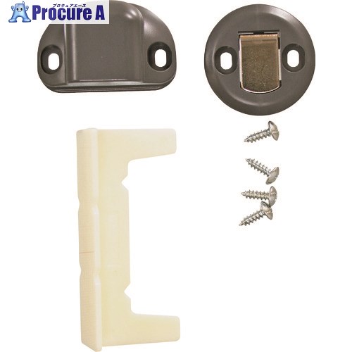 特長:●マグネット式の収納扉用キャッチャーです。●玄関、室内等の大型ドアに適しておりませんのでご注意ください。●扉が開いている時は戸当りがジャマにならないフラットタイプです。●ドアは設置位置でピタッと止まります。●床に突起物がなくフラットなので収納物の出し入れには最適です。