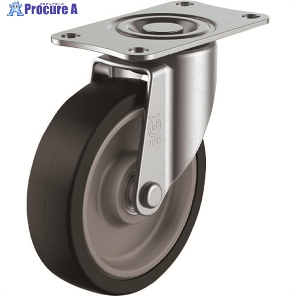 ユーエイ プレート式 自在 キャスター ゴム 車輪径100mm SILENTタイプ SFHG型 取付寸法82×40 ▼158-6506 SFHG-100NRB 1個