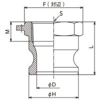仕様2:●ネジ:JIS管用テーパーネジ(R)●カムロックの使用温度範囲は、ガスケットに準じます。ただし、PP(ポリプロピレン)製のカムロックは上限が60℃です。