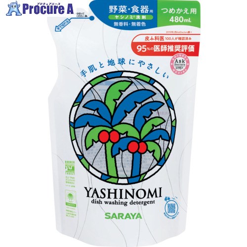 サラヤ 詰替用洗剤 野菜・食器用中性洗剤 ヤシノミ洗剤詰替用 480ml ▼208-2648 30969 1個