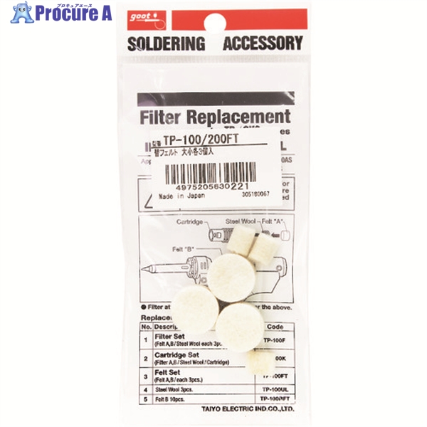 グット 替えフェルト 大小各3個入り ▼213-7150 TP100FT 1パック