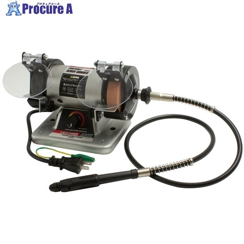 仕様2:●・電源:AC100V〜50/60Hz・定格電流:0.8A・消費電力:120W・定格使用時間:15分・無負荷回転数:0〜10000min-1(無段階調節)・対応ディスク径(外径×内径×幅):Φ75×Φ10×20mm・ペンシルグラインダーコレット径:Φ3mm・ペンシルグラインダーフレキシブルシャフト長:1m・電源コード長:1.8m・シールドサイズ:95×67mm