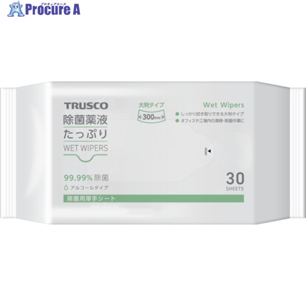 TRUSCO 除菌薬液たっぷりウェットワイパー大判 30枚 ▼251-4669 TJYTW-30 1パック