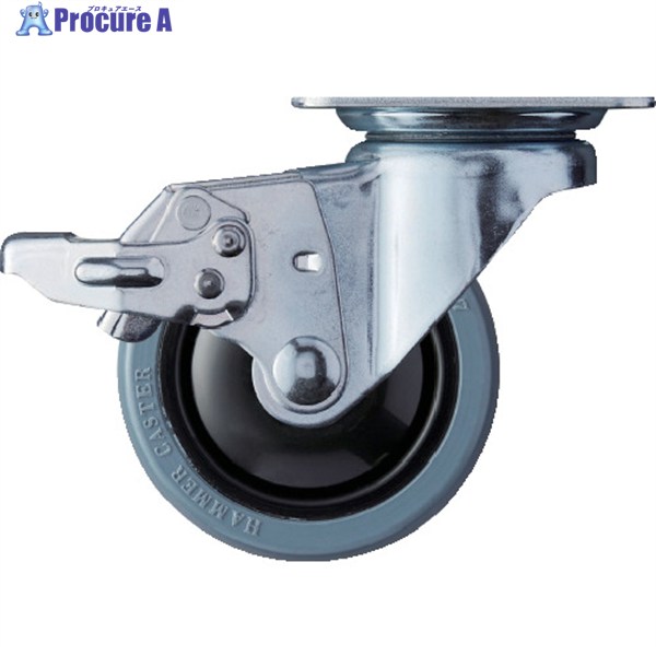 ハンマー 静音旋回式ゴム車輪(ナイロンホイール・ベアリング)65mm ストッパー付 ▼320-0337 417BBS-FR65 1個