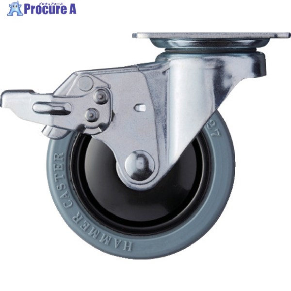 ハンマー 静音旋回式ゴム車輪(ナイロンホイール・ベアリング)75mm ストッパー付 ▼320-0345 417BBS-FR75 1個