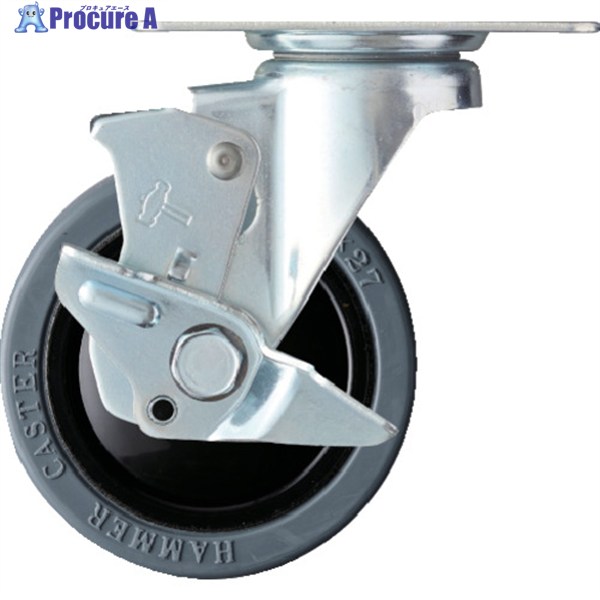 商品名:ハンマー 静音旋回式ゴム車輪(ナイロンホイール・ラジアルボールベアリング)100mm ストッパー付