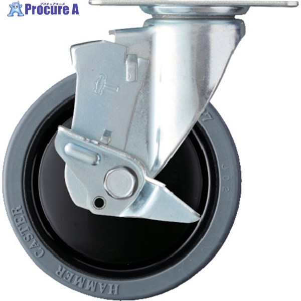 ハンマー 静音旋回式ゴム車輪(ナイロンホイール・ラジアルボールベアリング)125mm ストッパー付 ▼352-8197 413BBE-FR125 1個