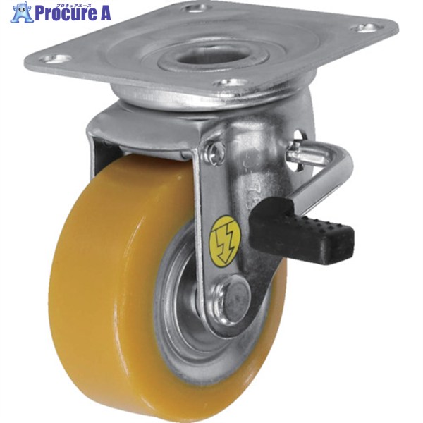 シシク 静電気帯電防止キャスター 自在ストッパー付 75径 ウレタン車輪 ▼353-5100 EUWJB-75 1個