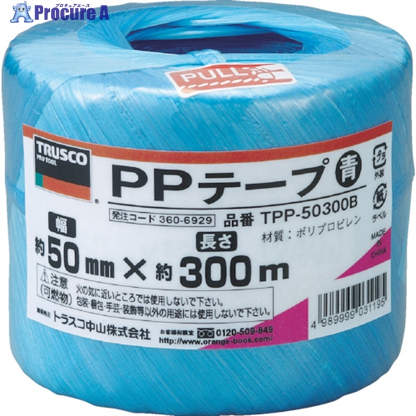 TRUSCO PPテープ 幅50mmX長さ300m 青 ▼360-6929 TPP-50300B 1巻