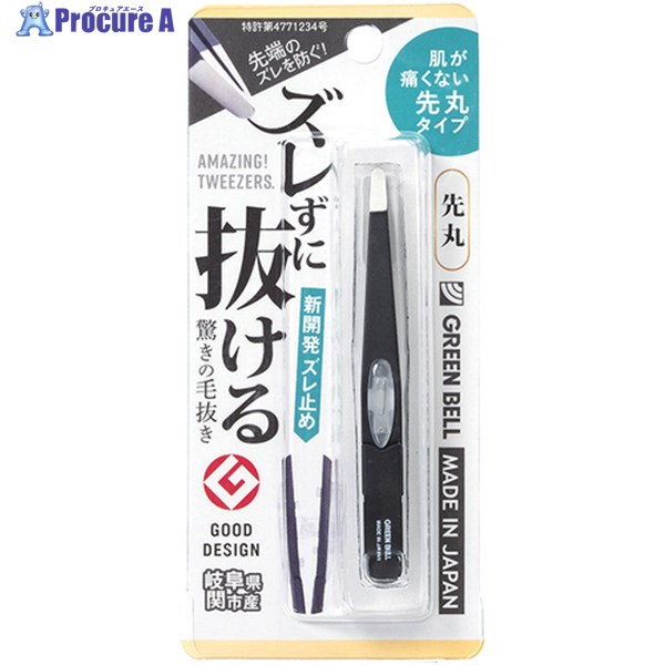 GREENBELL ズレずに抜ける驚きの毛抜き 先丸 ブラック ▼368-7820 GT-234 1個