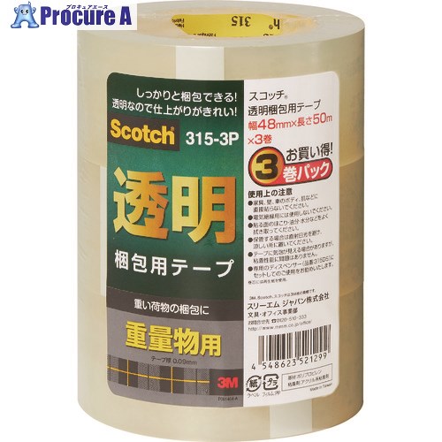 3M 透明梱包用テープ 48mmX50m 3巻パック 重量物用 ▼407-1565 315-3P 1パック