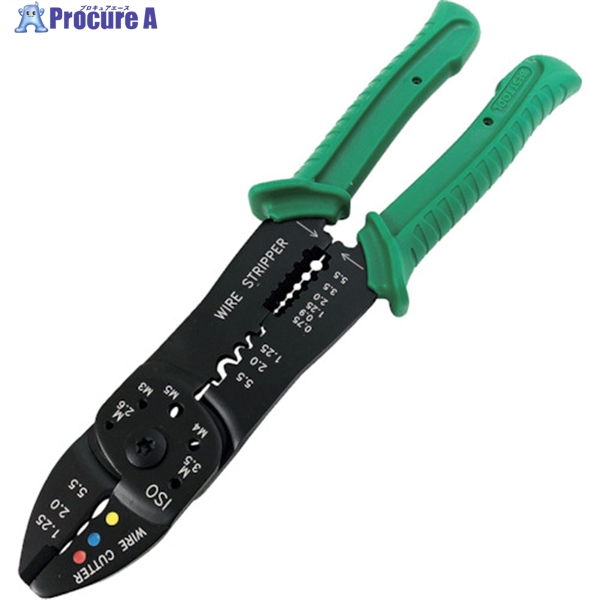 特長:●絶縁端子・裸端子の圧着やボルト・ネジの切断、コードの切断、被覆コードの皮剥ができる多機能ペンチです。●破線部は形状力学に基づくラウンドスタイルでゆがみを防止できる仕様になっています。●自動車整備やメンテナンス、電気工作・工事に最適です。●形状力学に基づくラウンドスタイルで破線部は形状力学に基づくラウンドスタイルでゆがみを防止できる仕様になっています。●軽量で弾性のあるエラストマー製のゴムグリップは、手にしっかりとなじみやすい仕様となっています。