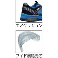 特長:●人体に溜まった静電気を靴底全体から逃がします。●大型エアクッションが、かかとの衝撃を吸収します。●軽量で幅広のワイド樹脂先芯です。●光を反射するリフレクタ付です。