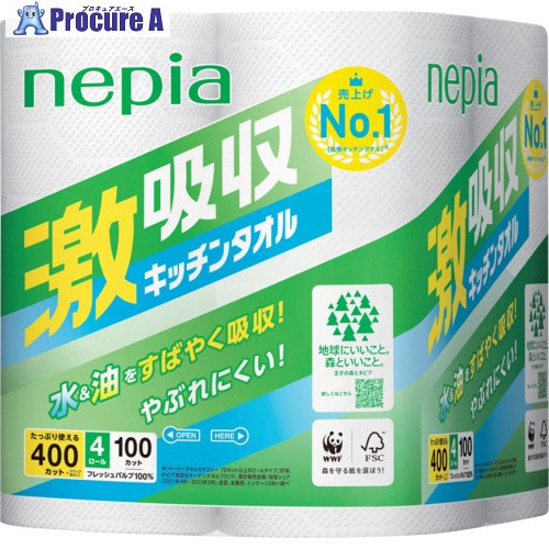 ネピア 激吸収キッチンタオル4ロール100カット ▼457-9724 33522 1パック
