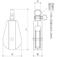●基本使用荷重(t):0.05●最大使用ロープ径(mm):8●車数:1●車径(mm):40●使用荷重(kg):50●適合ロープ径(mm):〜8●使用荷重(kg):50●種類:回転式●車幅(mm):11●A(mm):44●B(mm):20●C(mm):12●L(mm):93
