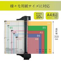 ●全長(mm):385●奥行(mm):248●高さ(mm):61●裁断幅(mm):310(A4サイズ)●適合替刃:K-18、DCC-28、DCC-29●幅(mm):248●タイプ:A4サイズ●折りたたみ時幅(mm):133●裁断枚数丸刃(枚):10●裁断枚数ミシン目刃(枚):3●適合替カッターマット:DCM-310