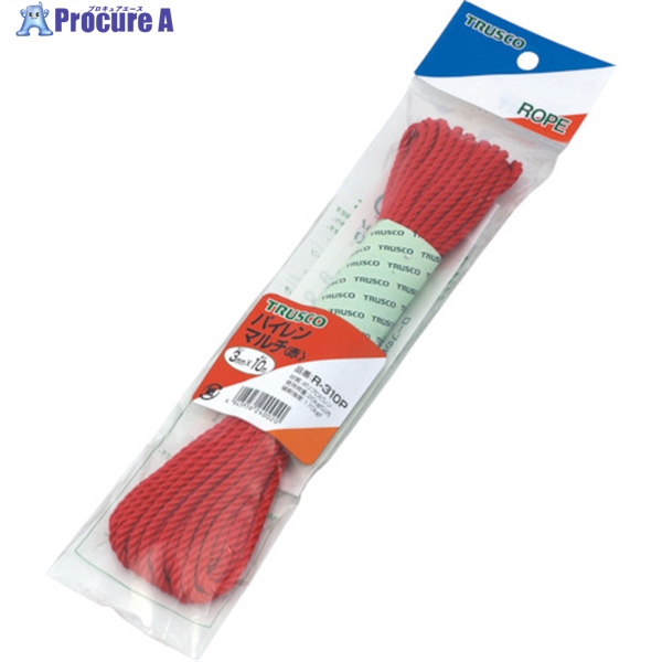 TRUSCO パイレンカラーロープ 3つ打 線径3mmX長さ10m 赤 ▼511-3091 R-310P R(3パイX10M レッド) 1巻
