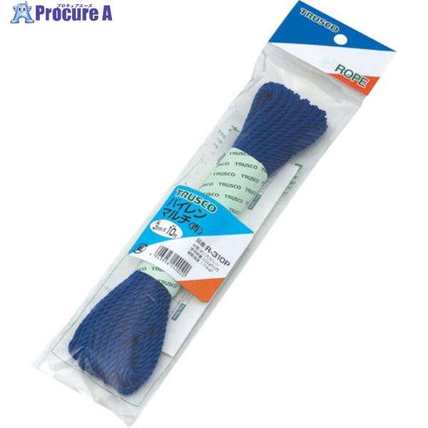 TRUSCO パイレンカラーロープ 3つ打 線径3mmX長さ10m 青 ▼511-3105 R-310P B(3パイX10M ブルー) 1巻